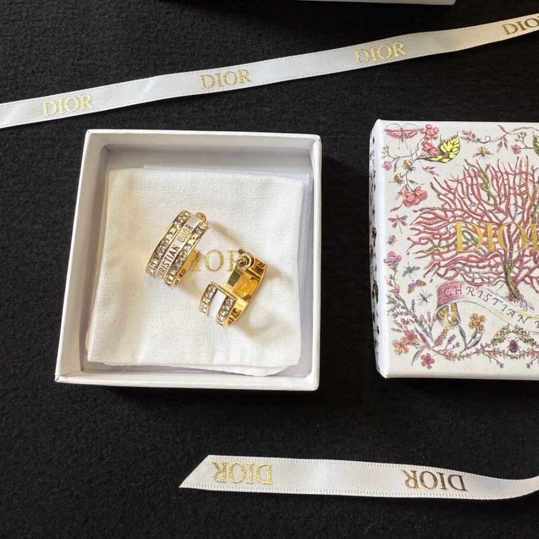 CD Classic Diamond Metal Hoop Stud Earrings YV24060231