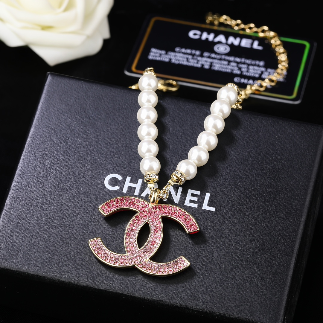 CH Full Diamond Logo Pendant Pearl Necklace YV24060122