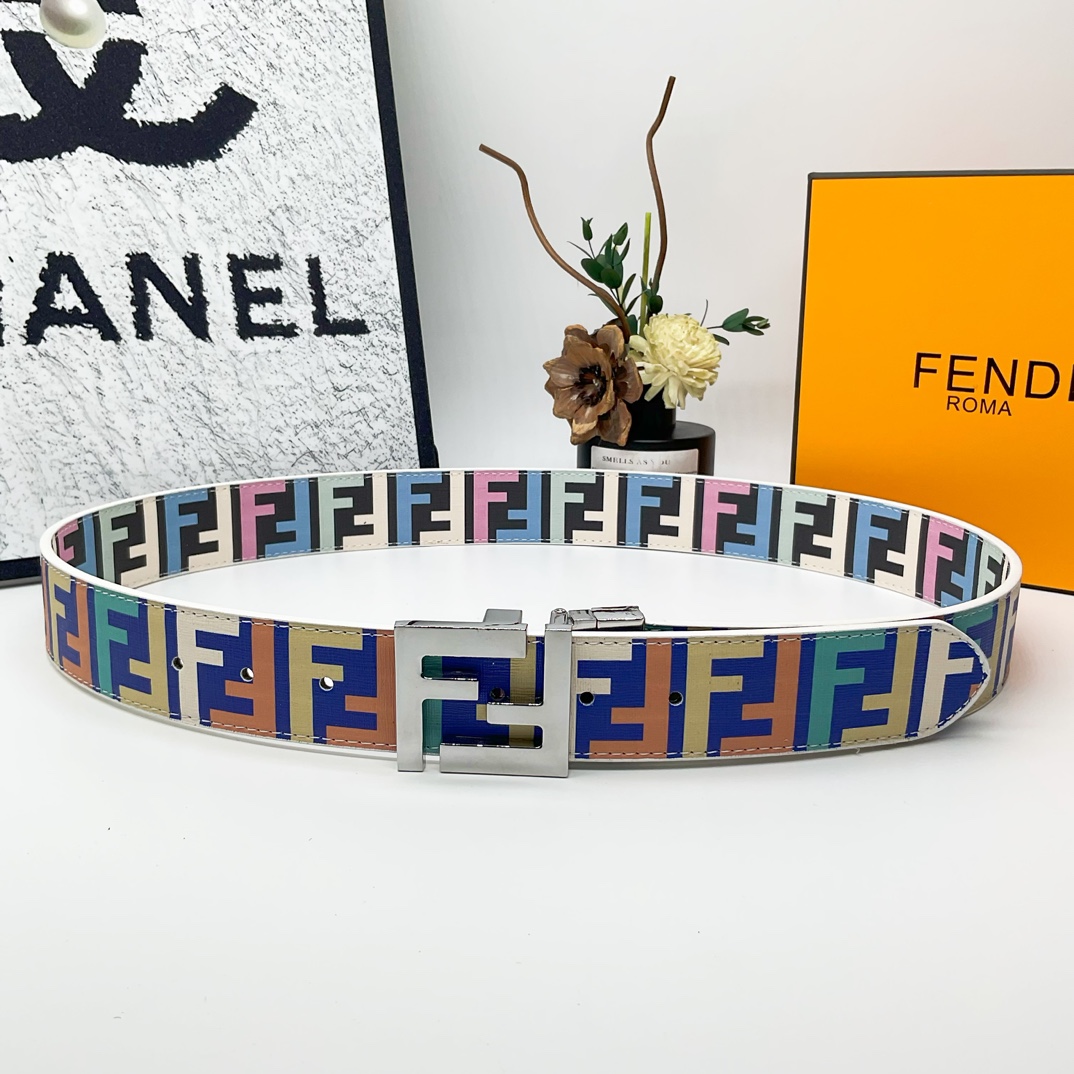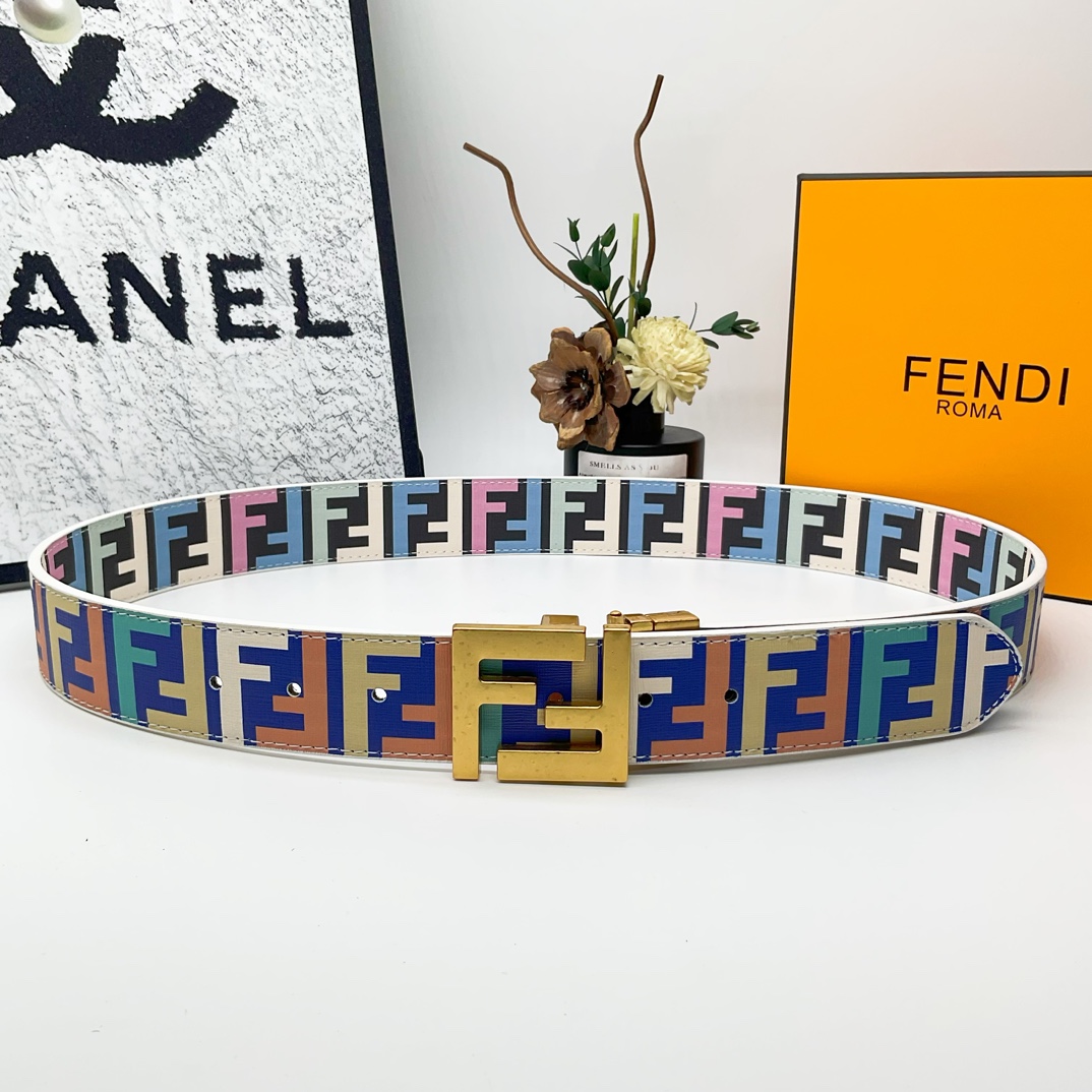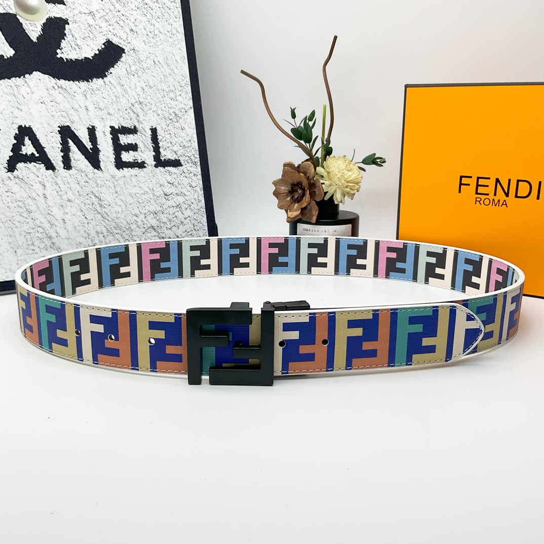 FD Iconic Double-F Logo Two-Tone Reversible Monogram Belt YVTF112002