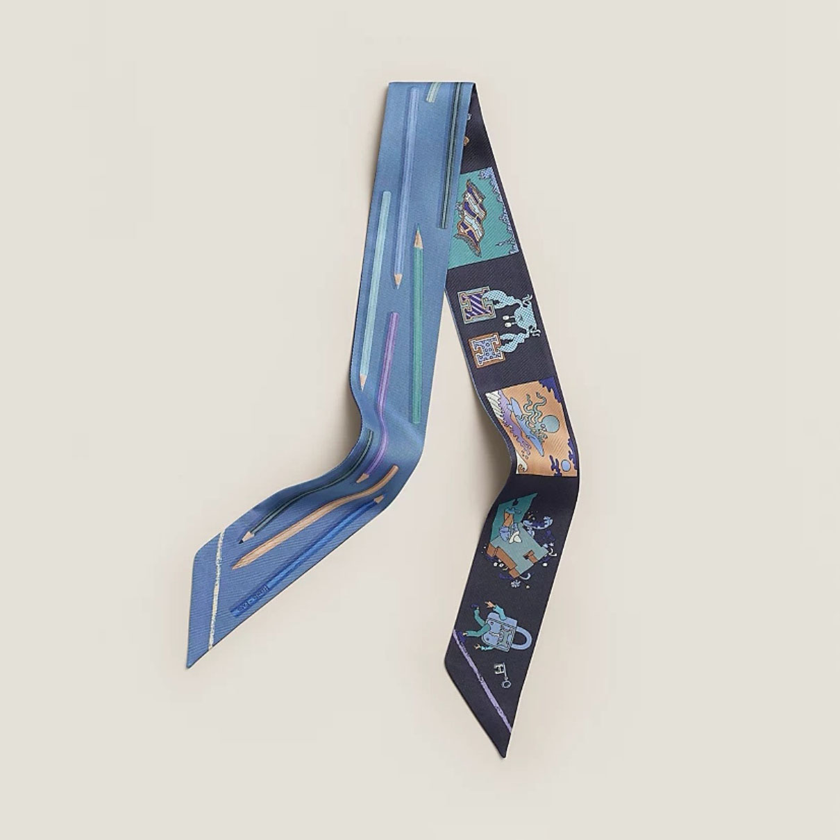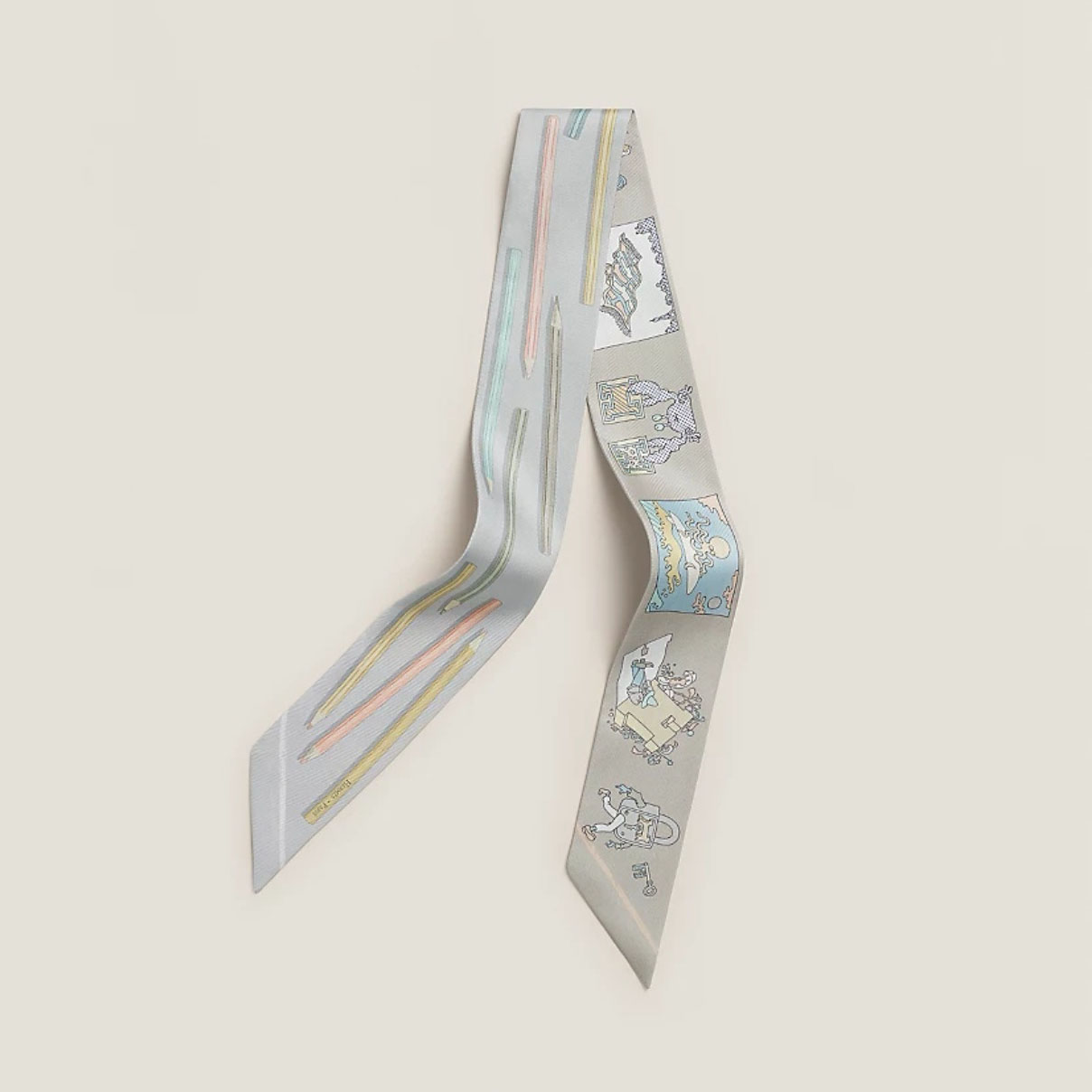 HM A Vos Crayons et Carre Libre Twilly silk scarf YV24060108