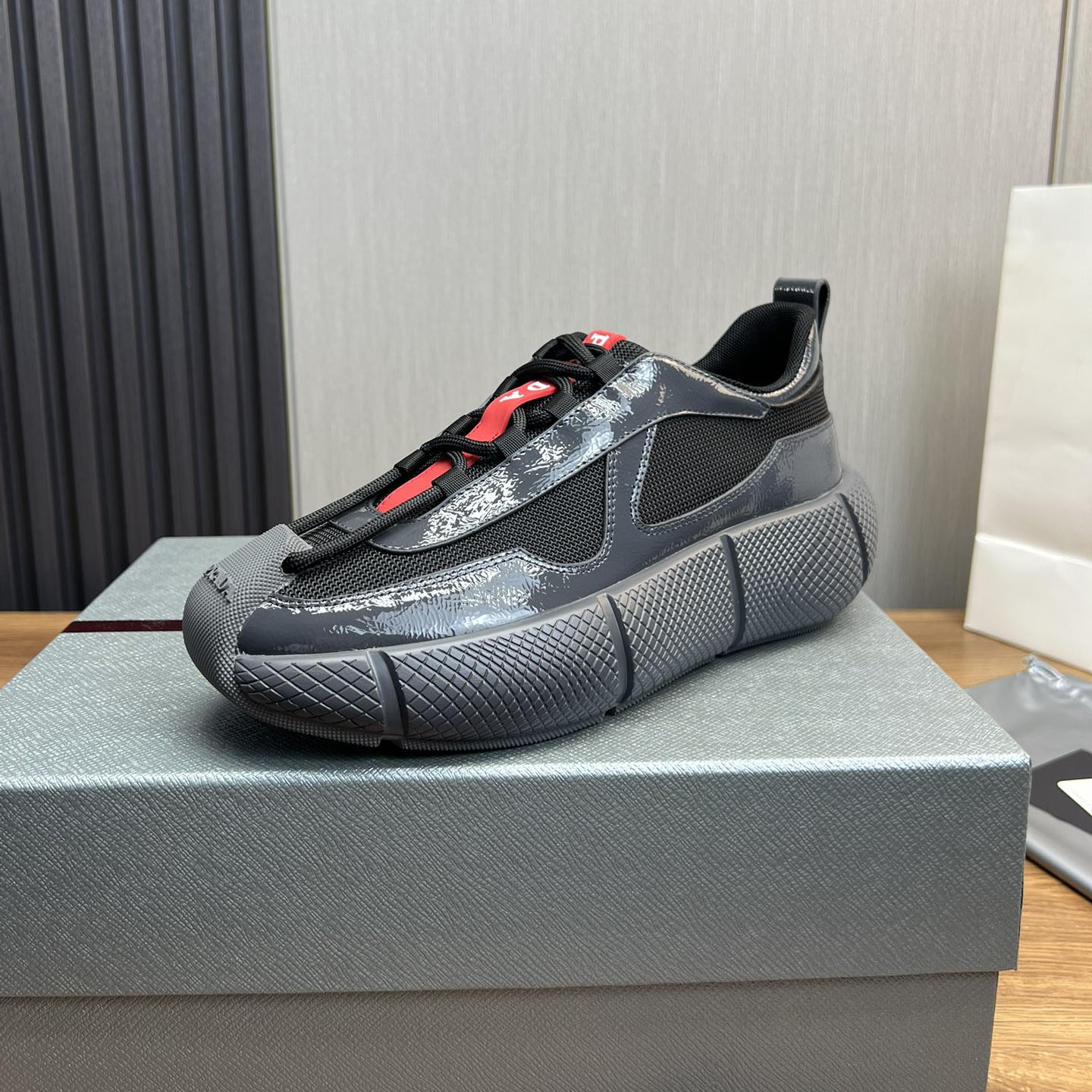 PRA Men's Patent Leather + Mesh Sneakers Ev25061076