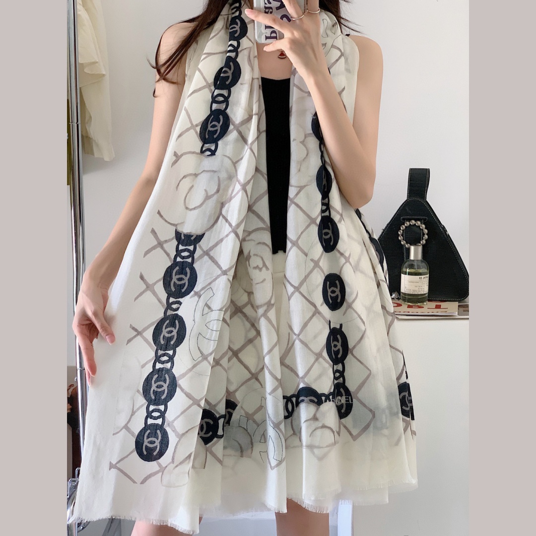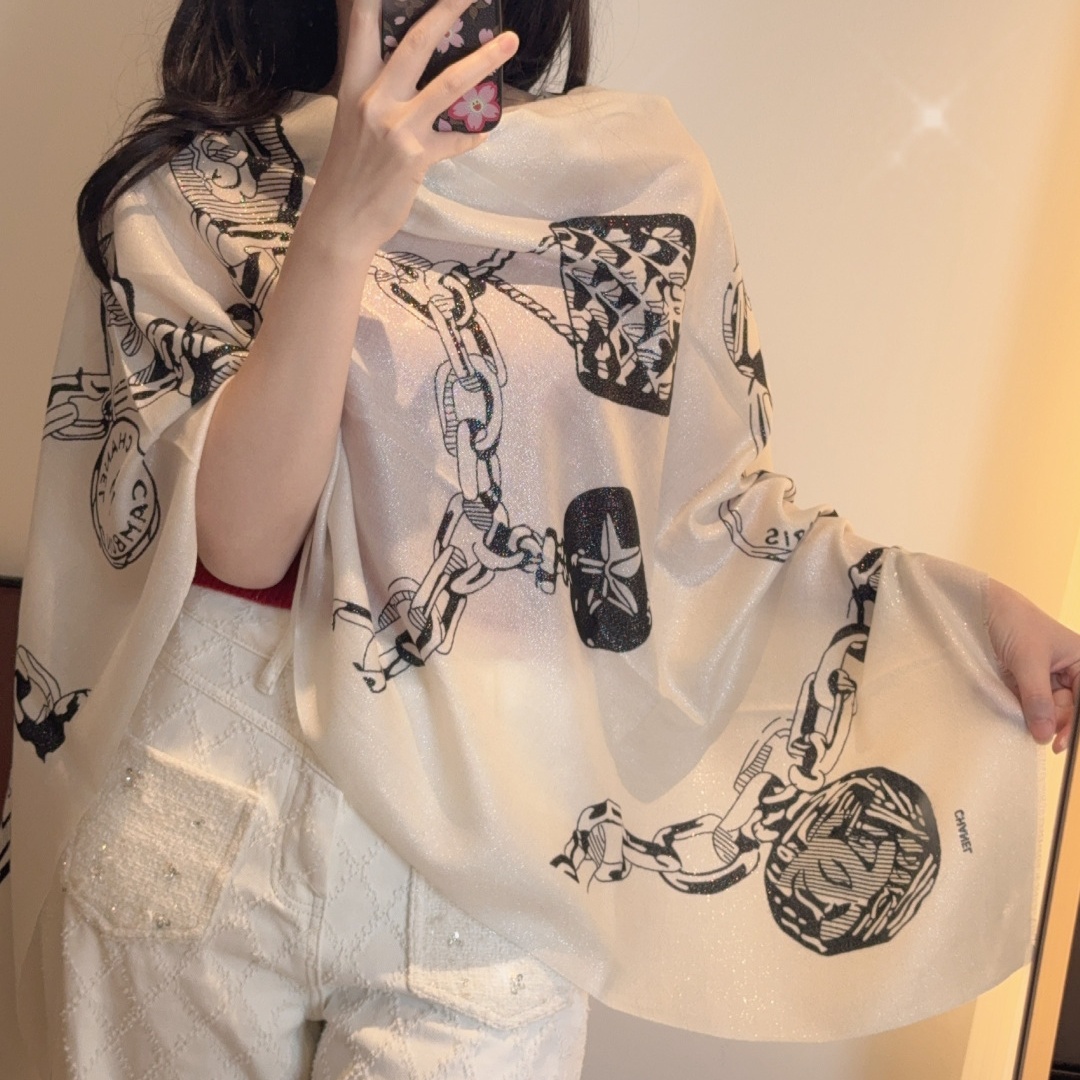 CH Double C Metallic Thread Embroidered Two - Tone Logo Scarf YV25091403