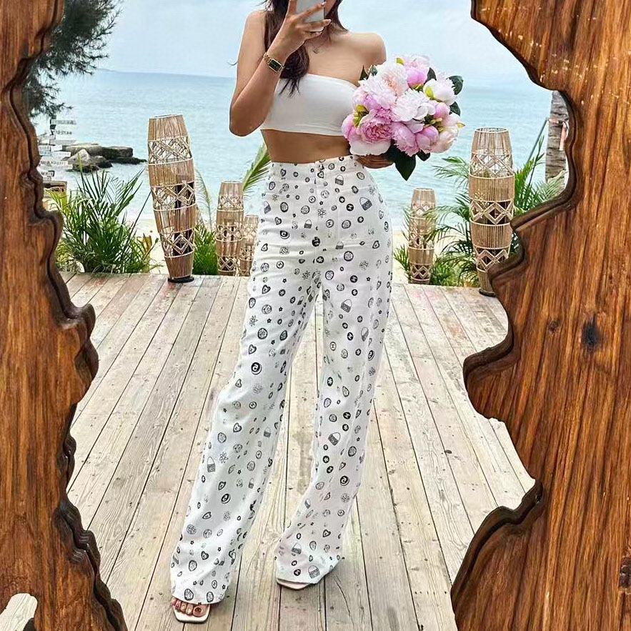 CH Jeans with Camellia and Double C Logo Print XX25102316