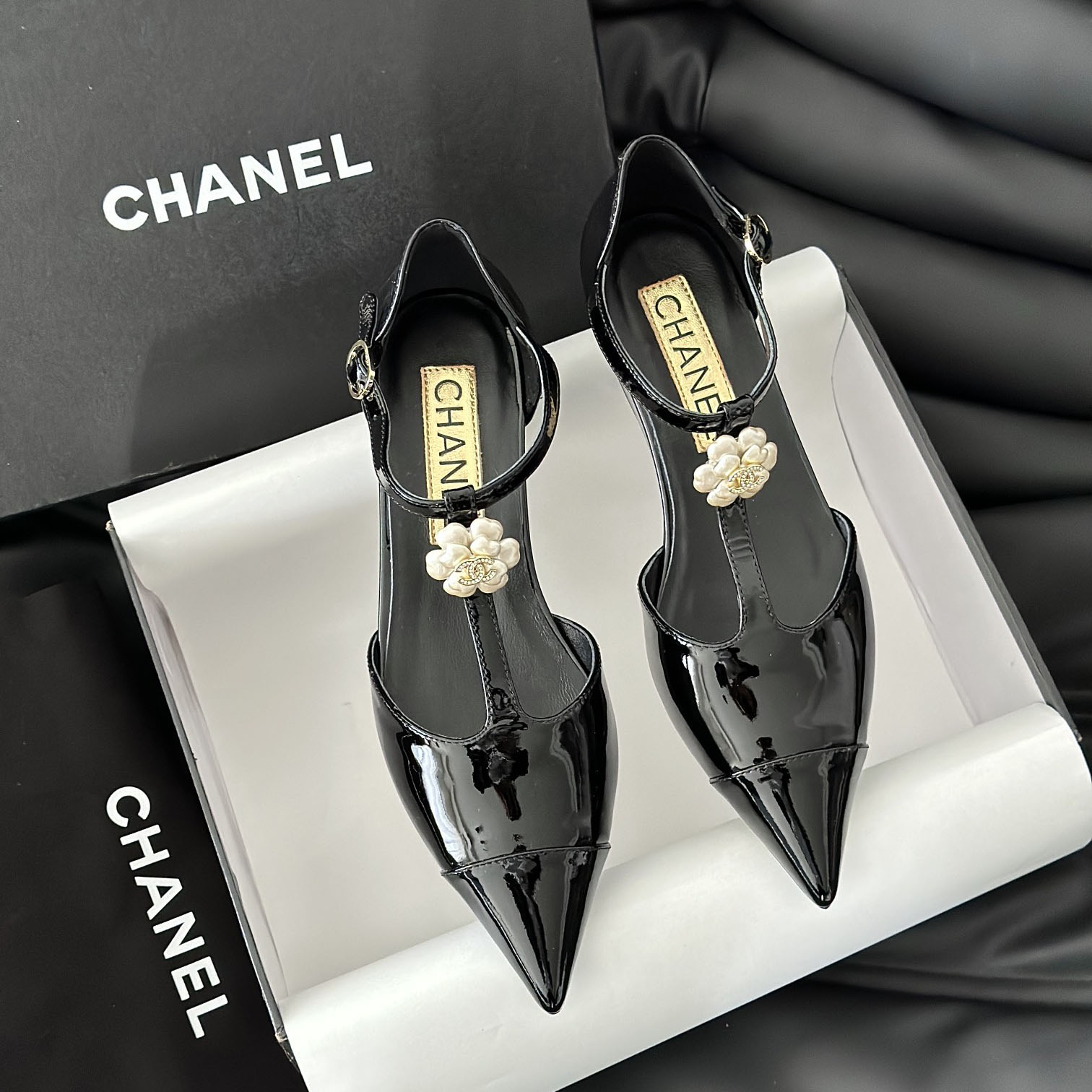CH Fashion Leather Pointed Toe Camellia Wedge Heels DD250204