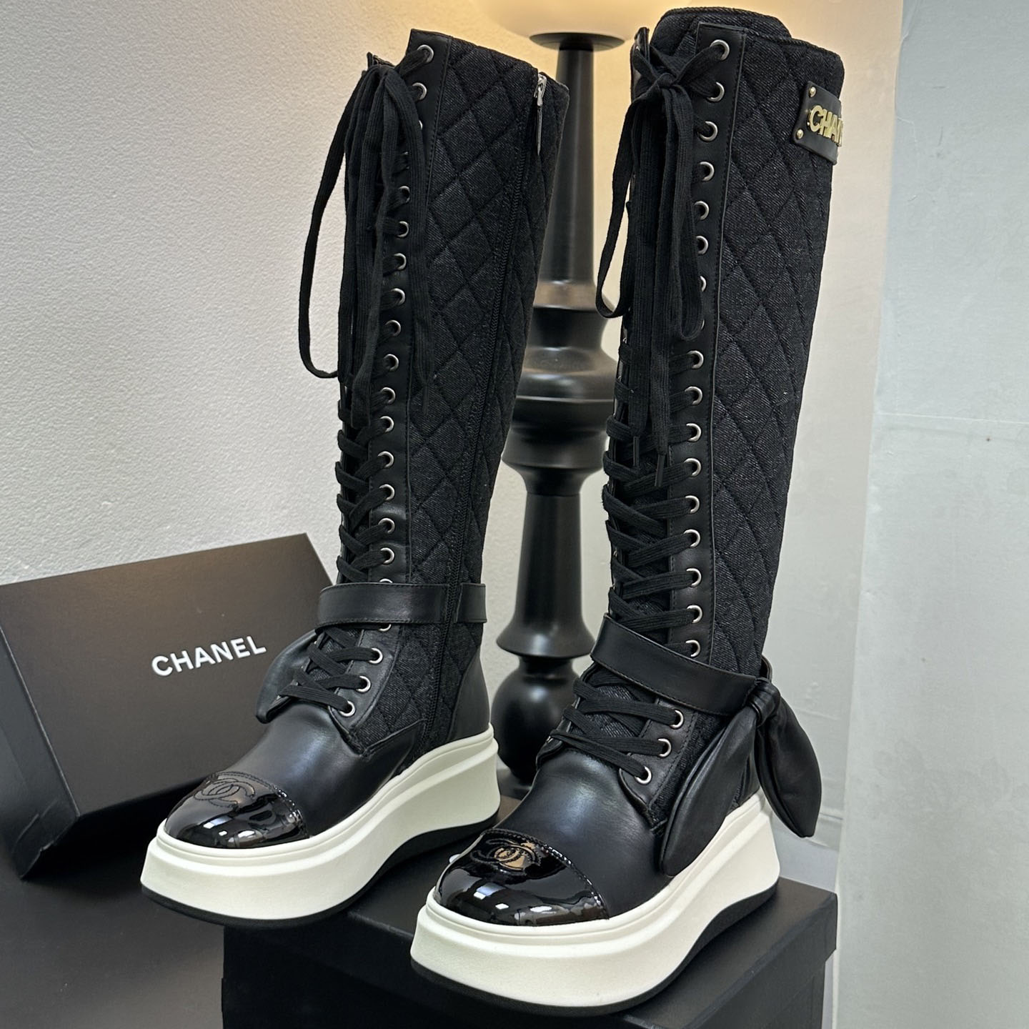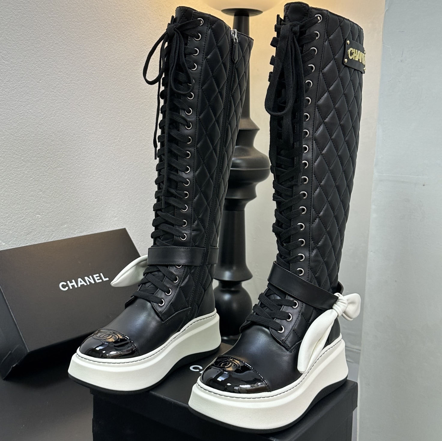 CH Classic Diamond Pattern Rabbit Ear Lace-Up Boots AE25091109